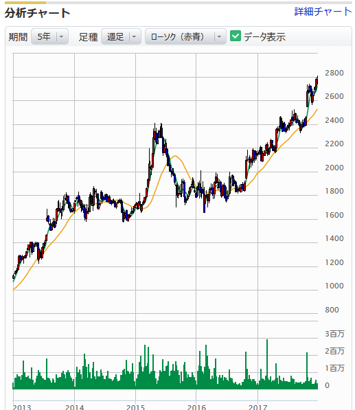 短期的(1年)も長期(5年)も、上昇トレンドを描いております。