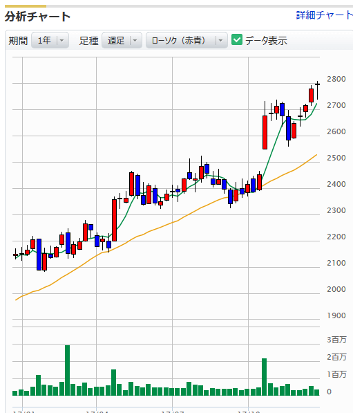 現在は全体的に株高の相場ですので、割安性はいつもより目をつぶっております。