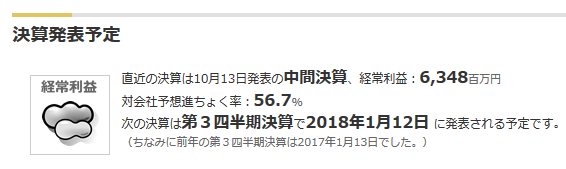 第2四半期で会社予想達成率が56.7%になっており、くもりマークとなっております。