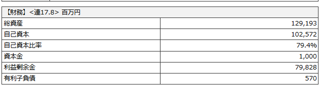 マネックス証券で 会社四季報も確認しましたが、有利子負債がややありますが、自己資本比率は79.4%となっており、倒産リスクはやはり低そうです。
